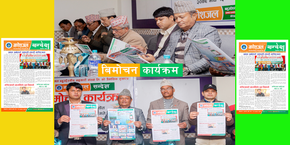 सुर्खेत । श्री गणेशजल बहुउद्देश्यीय सहकारी संस्था वीरेन्द्रनगर सुर्खेतको त्रैमासिक मुखपत्र ‘गणेशजल सन्देश’ एक समारोहका बीच बिहीबार विमोचन गरिएको छ ।