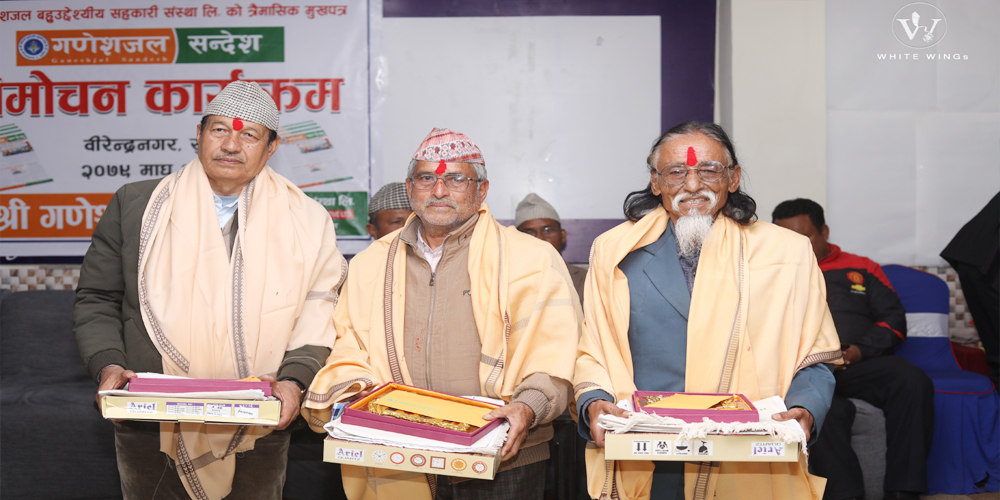 उहाँहरुलाई जनही पाँच हजार रुपैयाँ, संस्थाको लोगो र नाम अंकित भित्ते घडी, संस्थाको नाम अंकित झोला र दोसल्लासहित सम्मान गरेको गणेशजल सहकारीका अध्यक्ष प्रेमकुमार बिसीले जानकारी दिनुभयो । संस्थाले आफ्ना जेष्ठ नागरिक शेयर सदस्य र वरिष्ठ कलाकारहरुलाई वार्षिक रुपमा नियमित सम्मान गर्दै आइरहेको छ ।