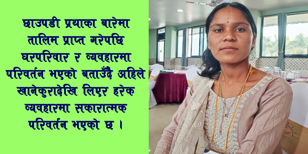दुई दिनसम्म सञ्चालन भएको उक्त कार्यशालाबाट छाउपडी अन्त्यका समस्या र चुनौतीहरूको पहिचानसँगै समाधानका उपायबारे विस्तृत छलफल गरिएको थियो ।